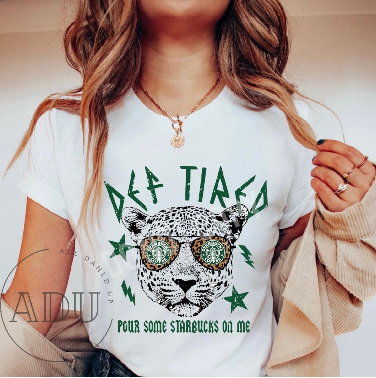 Coffee fan.. need I say more. This Def Tired-Pour Some Starbucks On Me graphic can be put a t-shirt or crewneck sweatshirt.