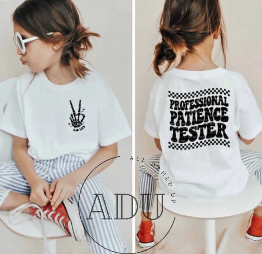 T-Shirt color options teal blue, hot pink,gray, or tan